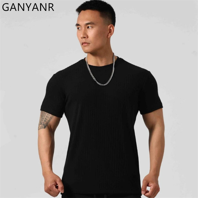 GANYANR Gym Clothing Men Running T-shirt Summer Golf Wear Active Fitness Short Sleeve Sports Bodybuilding Training Yoga Cool Tee